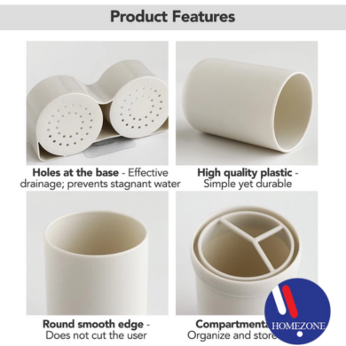 - Comes in 2 cups; 1 for compartmentalising toothpaste and toothbrush, 1 for rinsing