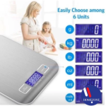 - This is an ultra slim digital kitchen scale with stainless steel weighing surface, brushed finish.
